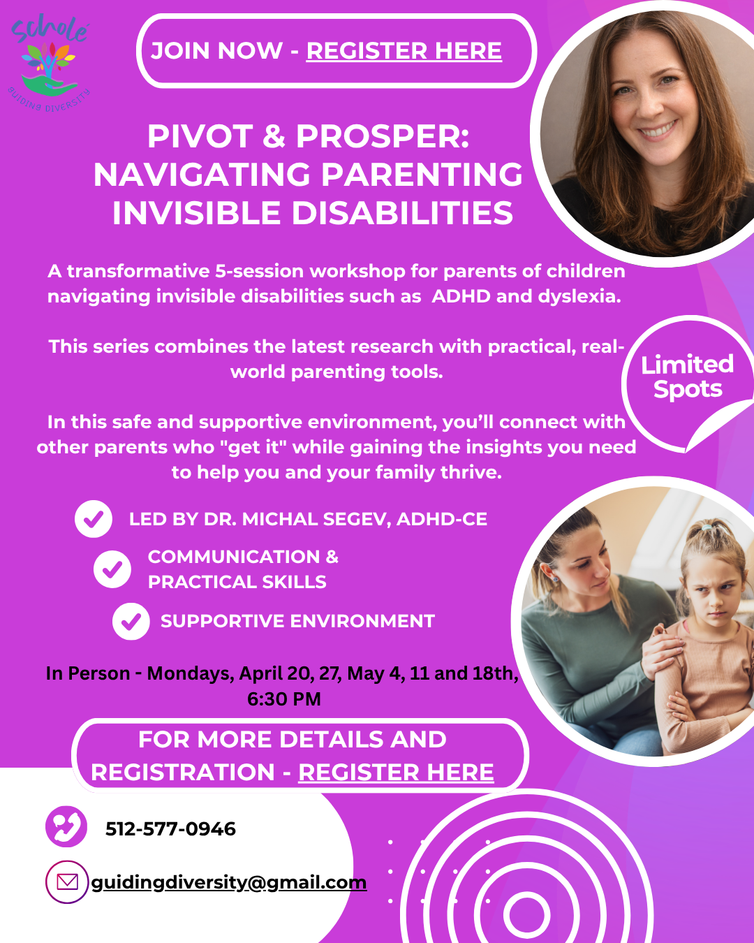 Michal Segev, M.Ed, ADHD Parent Coach, ADHD-CE provides ADHD parent coaching and academic coaching to children with ADHD and Learning Disabilities.